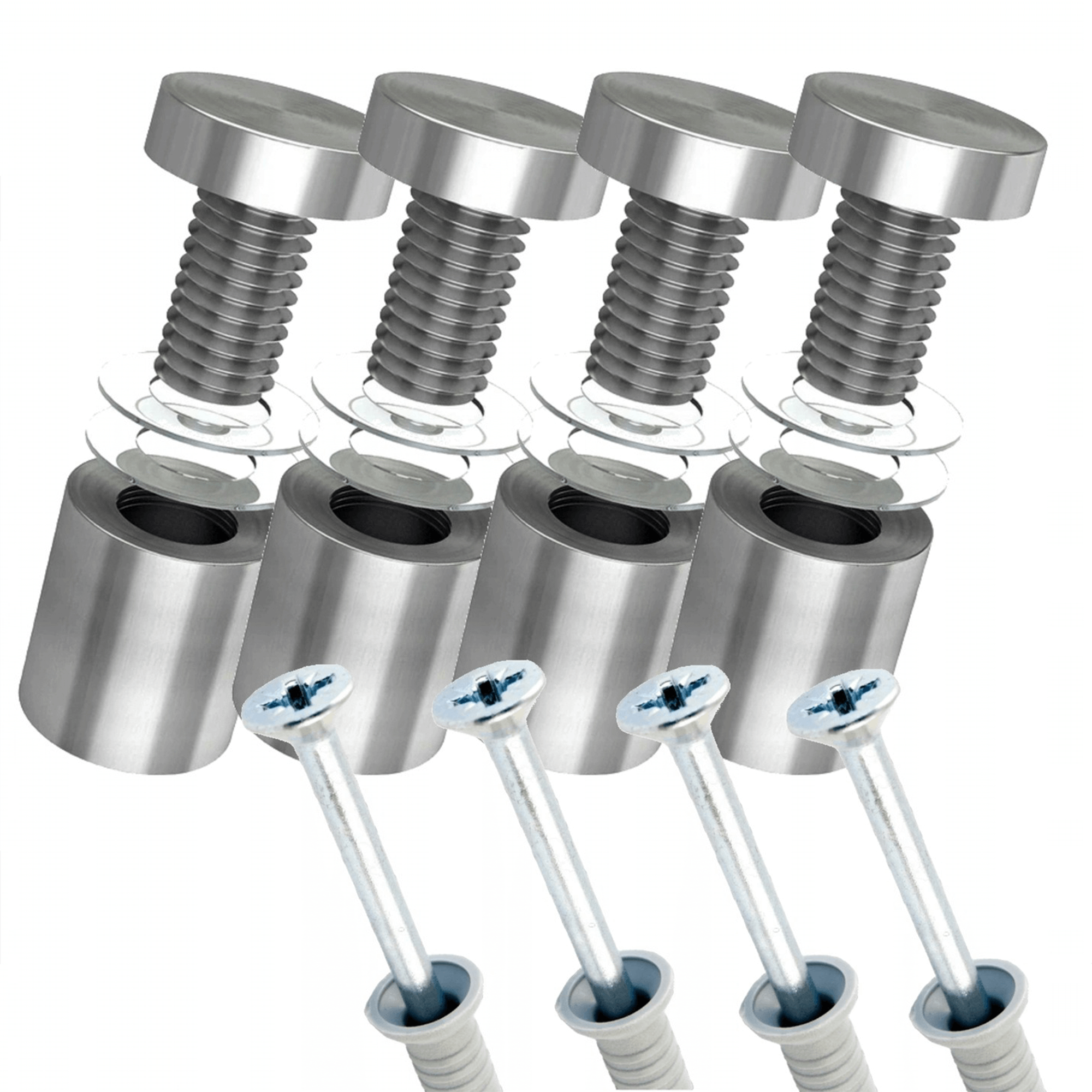 4x Dystans montażowy fi 19mm. (Srebrny) + kołki montażowe