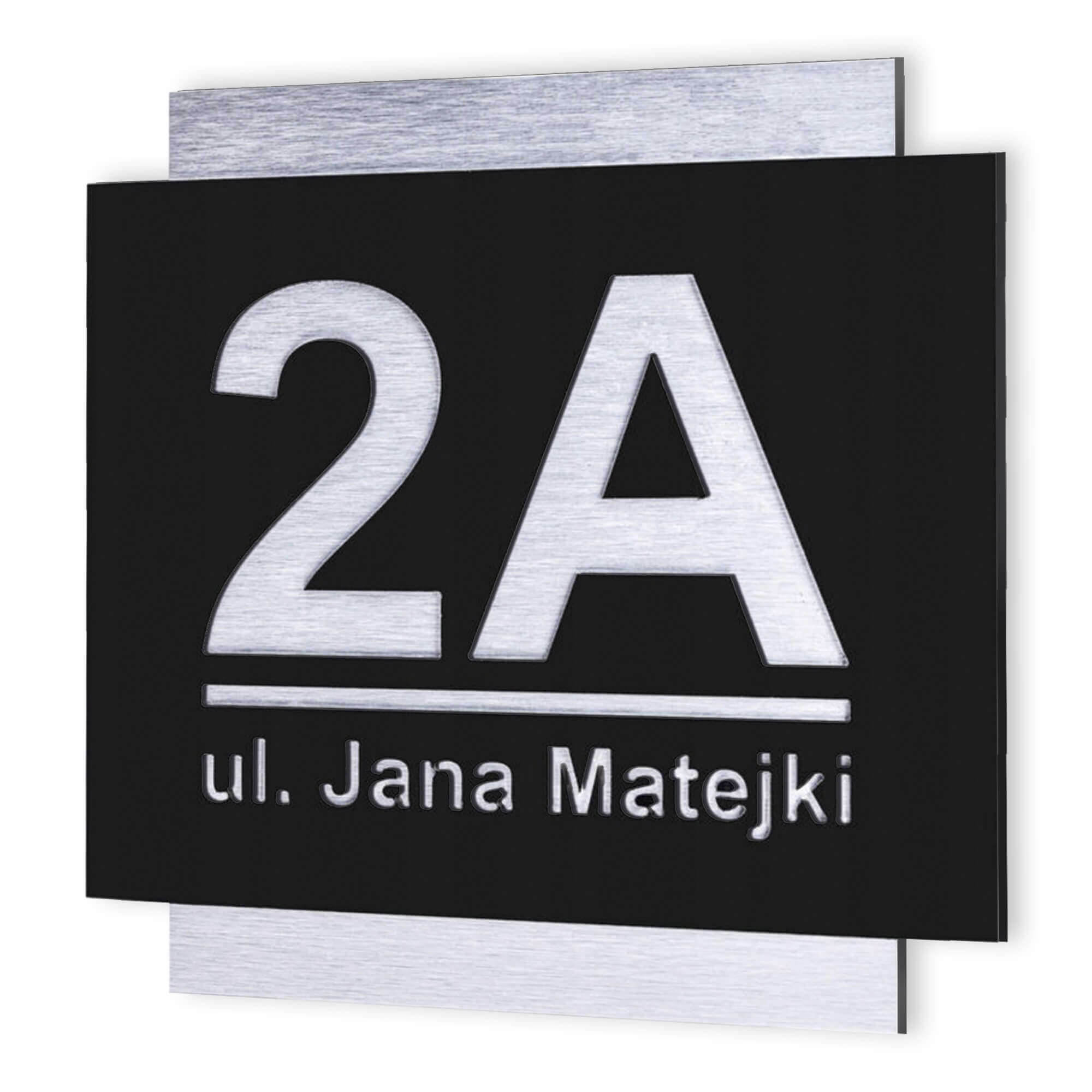 Designerska tabliczka adresowa 25×25 (antracyt-srebro) 2-wierszowa, pozioma
