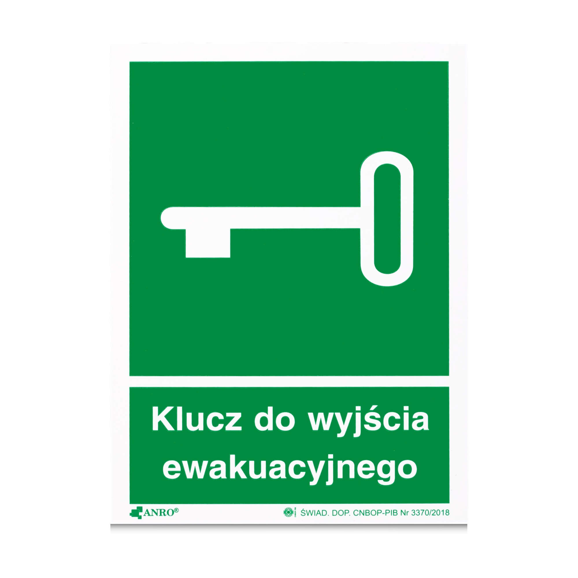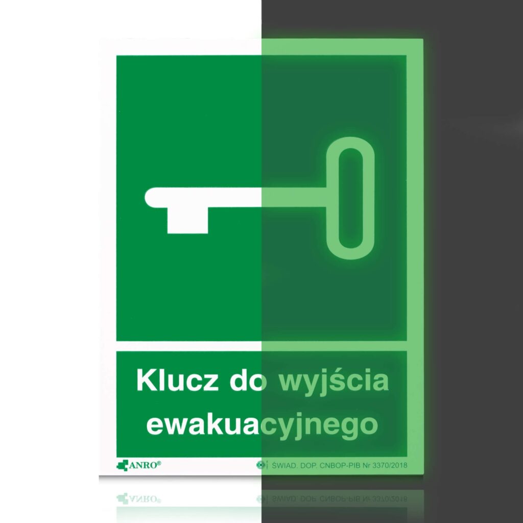 Znak fotoluminescencyjny na sztywnej płycie ,,Klucz do wyjścia ewakuacyjnego”