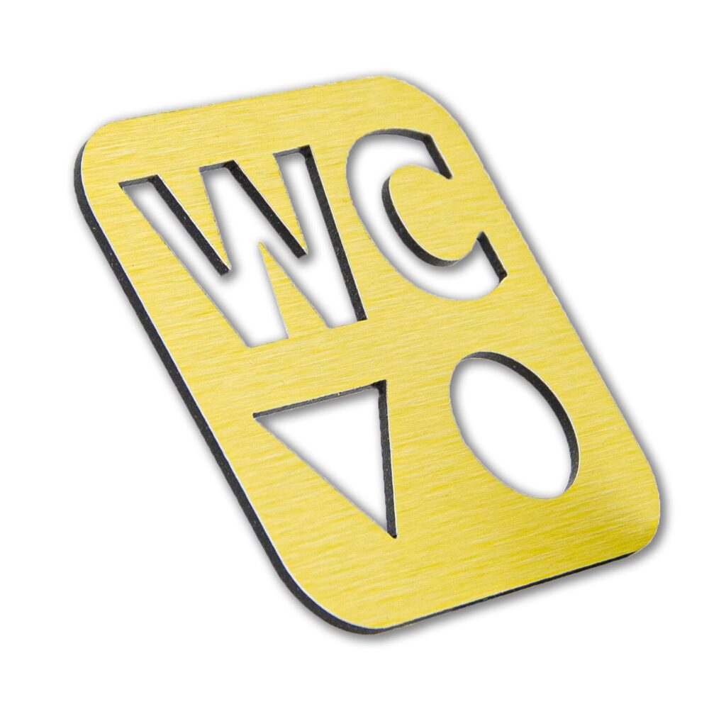 Piktogram Mały Toaleta "WC DAMSKO MĘSKI" Dibond Złoty 10x10cm
