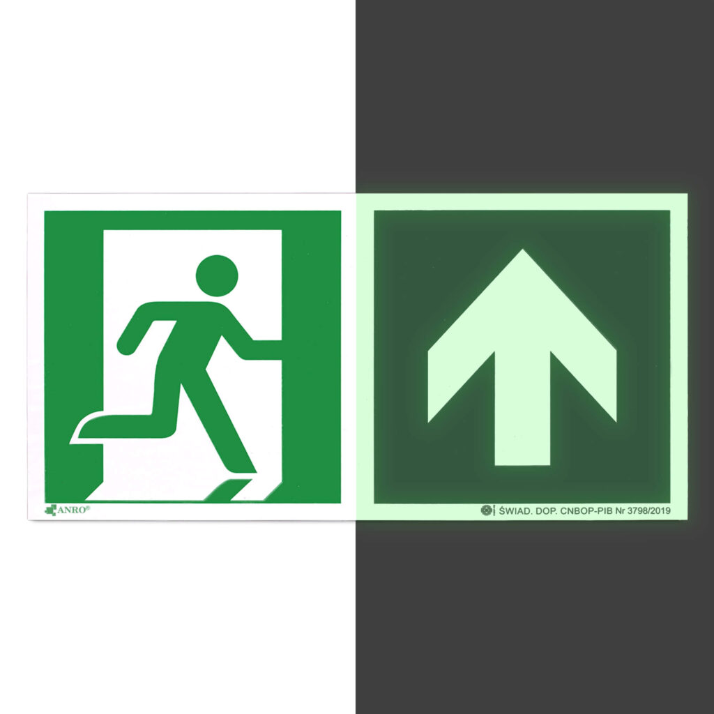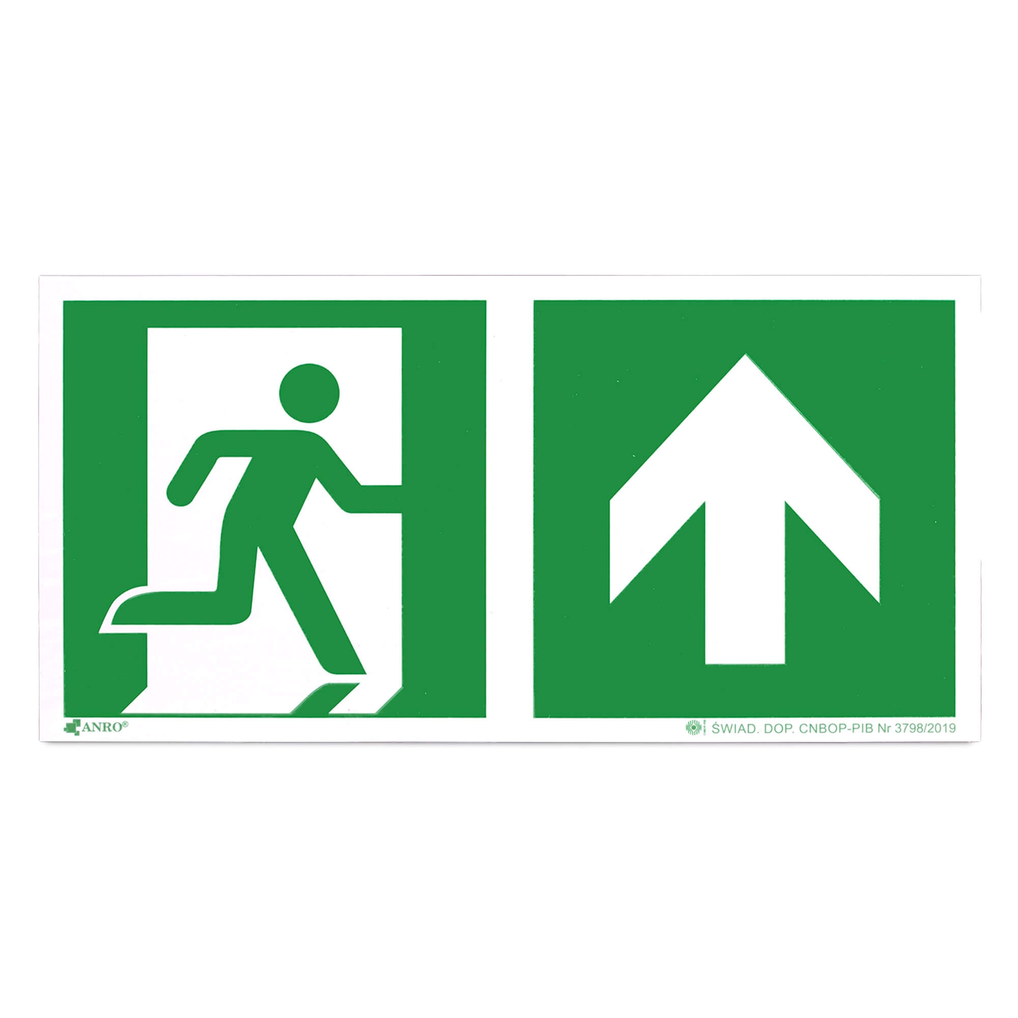 Kierunek do wyjścia prawo na wprost — znak BHP (15×30 cm, PCV)