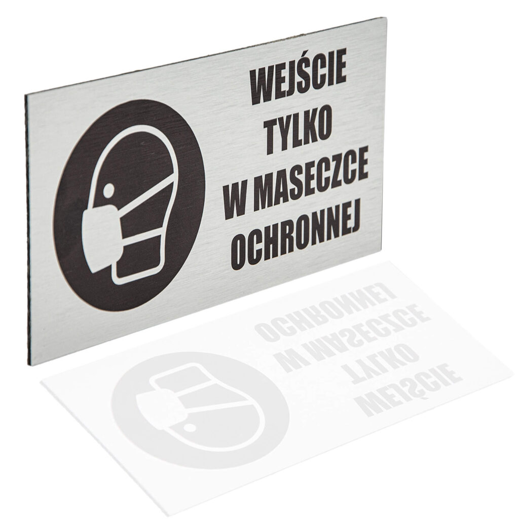 ⚫ TABLICZKA PCV 20×10 WEJŚCIE TYLKO W MASECZCE OCHRONNEJ – SREBRNA