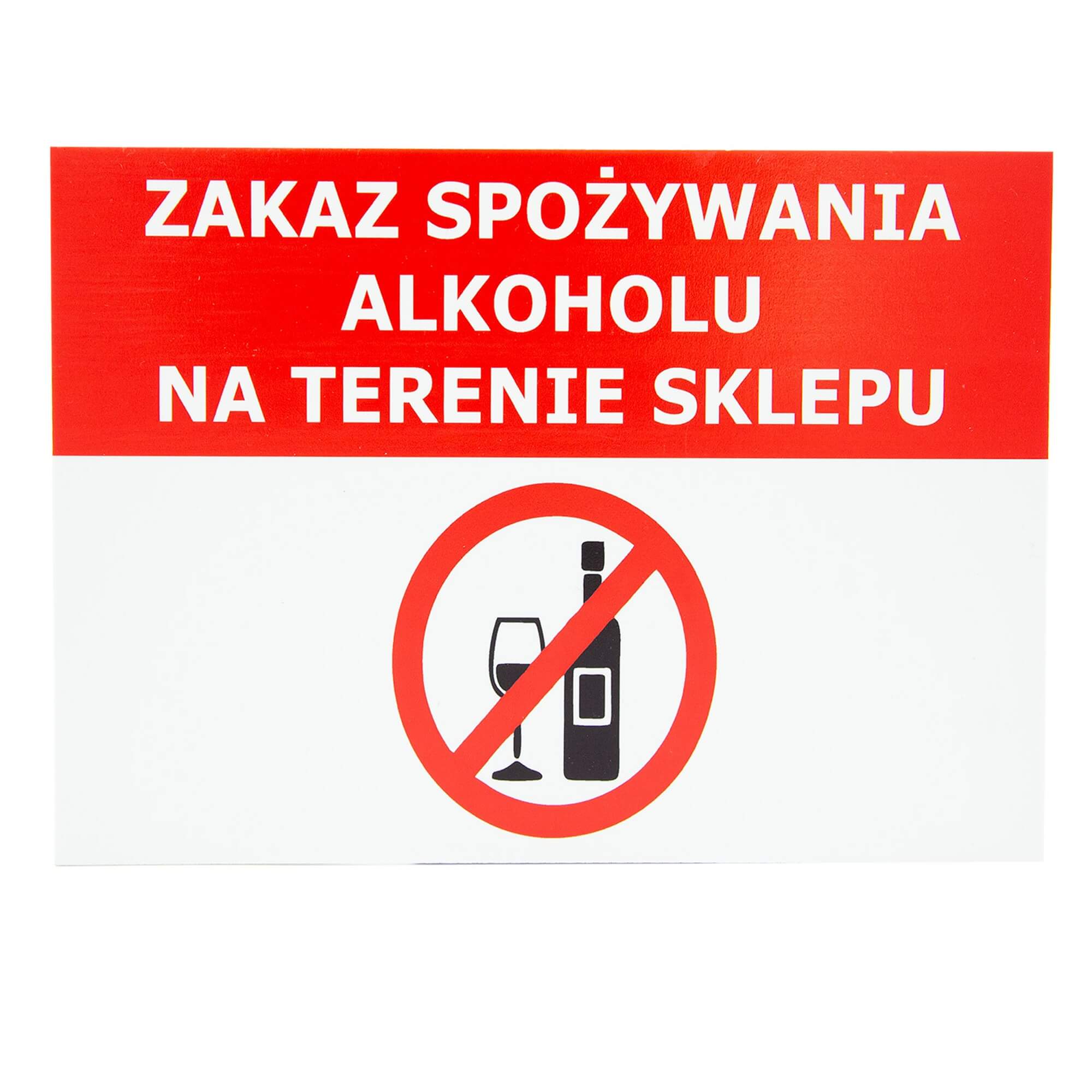 ⚫ TABLICA PCV 32×21 ZAKAZ SPOŻYWANIA ALKOHOLU NA TERENIE SKLEPU