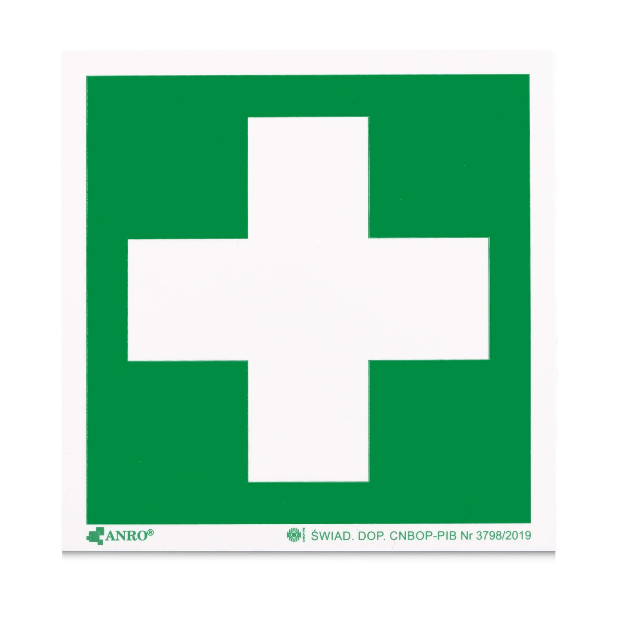 - Wskazuje miejsce, w którym znajduje się sprzęt, pomieszczenia lub służby pierwszej pomocy.
